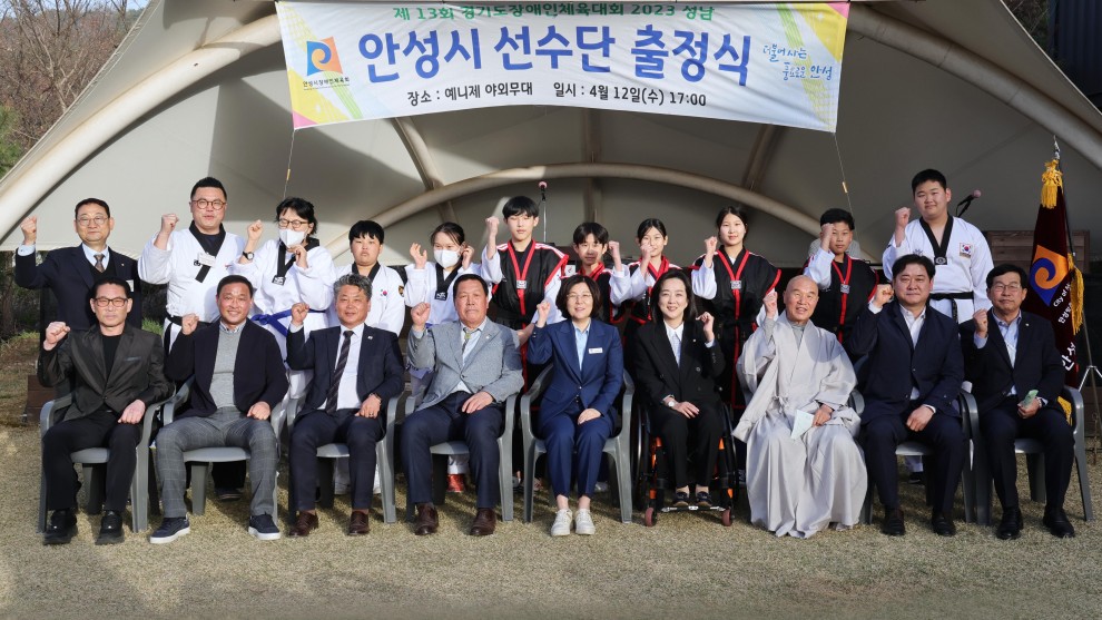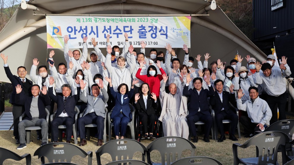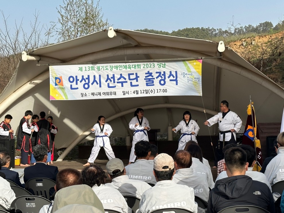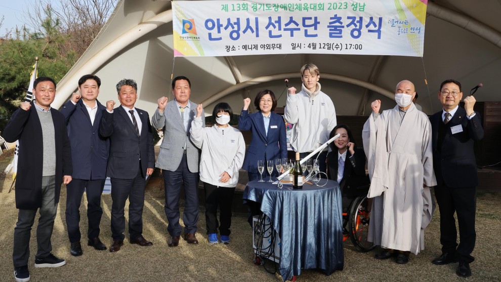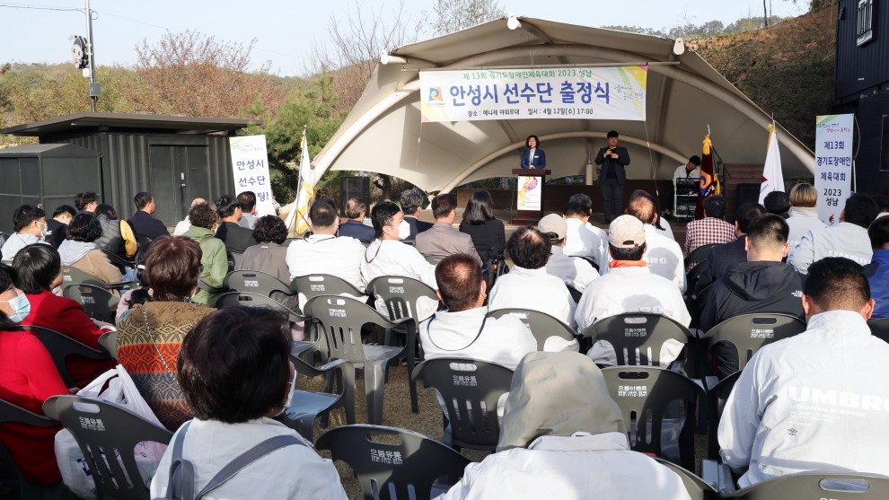 2023년 04월 13일 오후 5시에 예니제 야외무대에서 제13회 경기도장애인체육대회 2023 성남 안성시 선수단 출정식을 진행하였습니다.